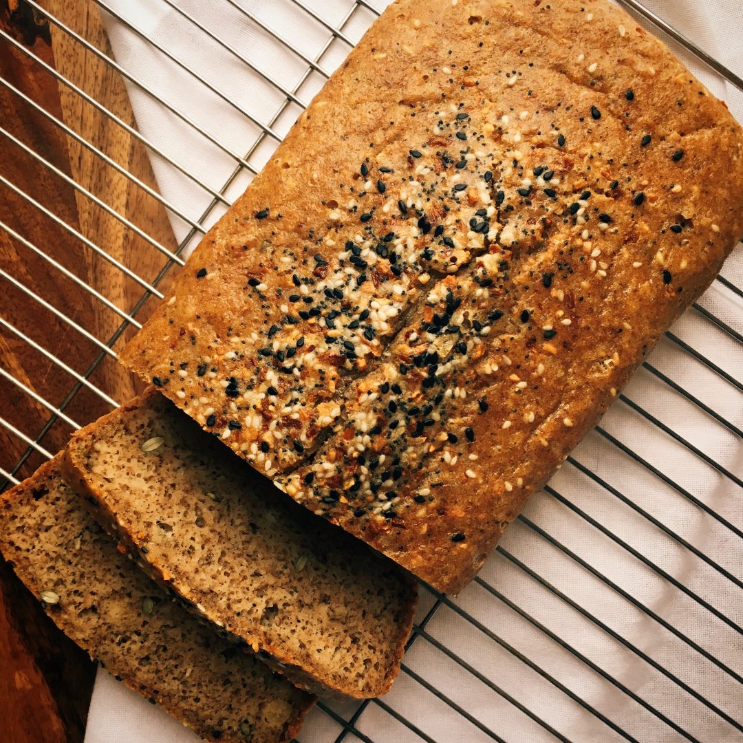 Ok. I’m done ranting (for now)…so here’s a FAN-FREAKING-TASTIC paleo bread recipe. It’s savoury and perfect for topping with avo and eggs, or making a little sammie. Grain-less but LEGIT. If someone handed me a slice, I wouldn’t know it didn’t have a lick of flour in it. I’m serious. It’s good. Go make it.