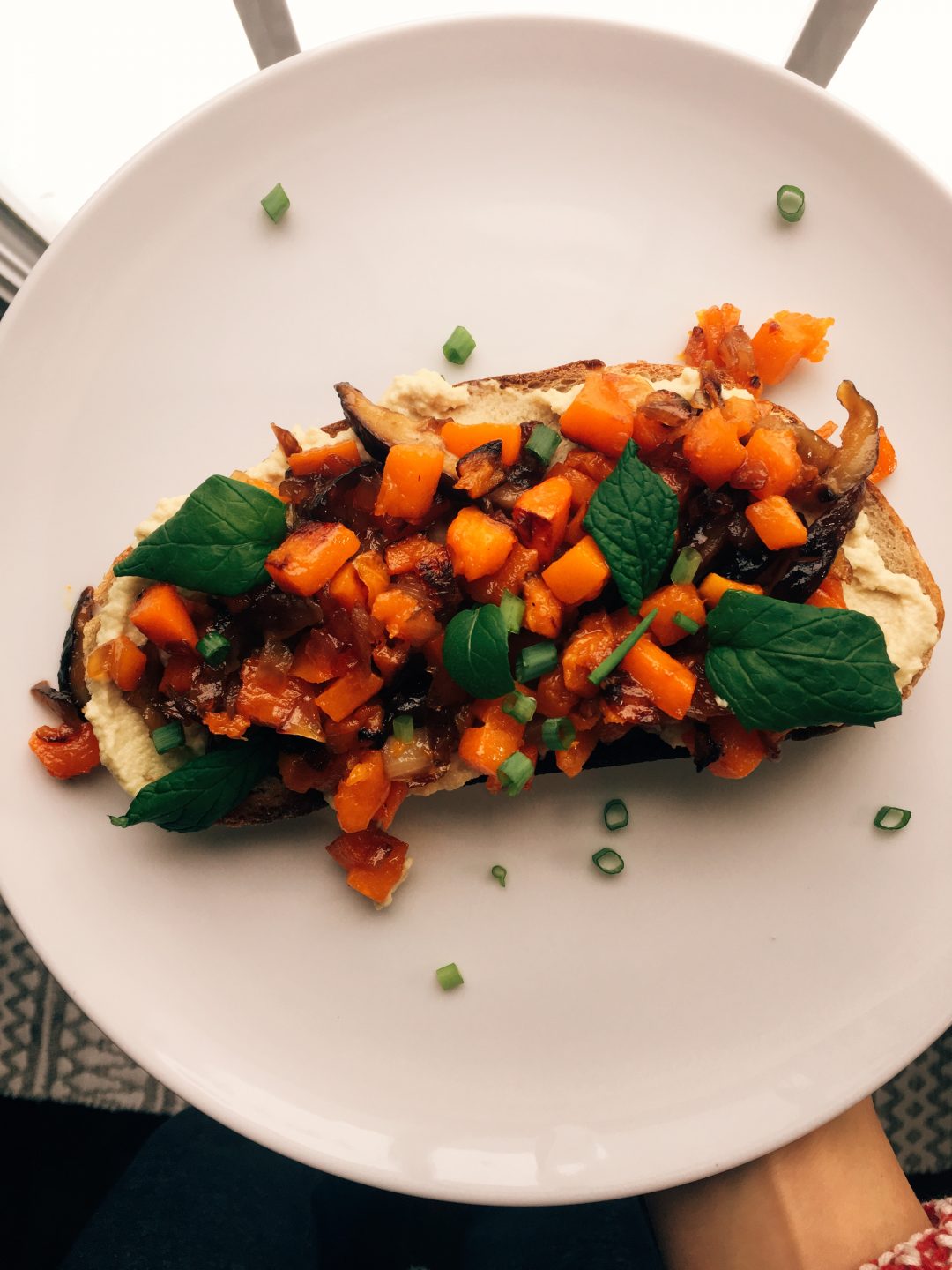 For the past three years at Christmas time, my huz and I visit Manhattan. It’s my FAVOURITE place to visit. There’s so much to see and do and NYC during the Christmas season is the best. *Cue Elf music* This past December was no exception. We flew into LaGuardia in early December, stayed for a week in lower Manhattan and two weeks after that, we got married! What a month it was! On the top of our list of things to do was to check out some popular restaurants. One particular Sunday, we visited Epistrophy. Quaint and cozy, this little italian restaurant serves organic, locally sourced foods in the heart of Nolita. I ordered a butternut squash toast. I’m not 100% sure but I think i died, came back to life, and died again. I’m not sure exactly what was in it, but it was insane. I thought I’d try and recreate the magic and maybe bring a little of the Big Apple to our house for brunch yesterday.